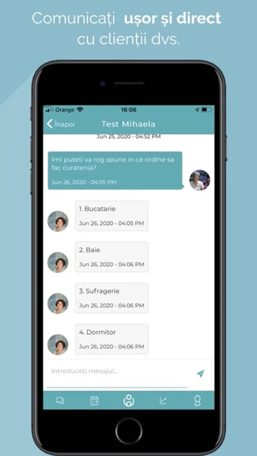 - Comunicați instant cu clientul, înainte sau în timpul vizitei, prin mesaje sau la telefon.