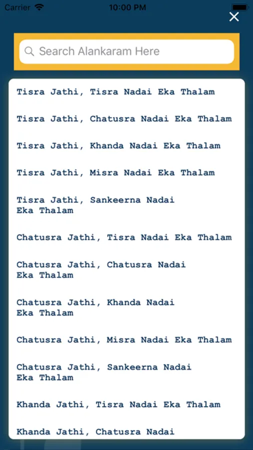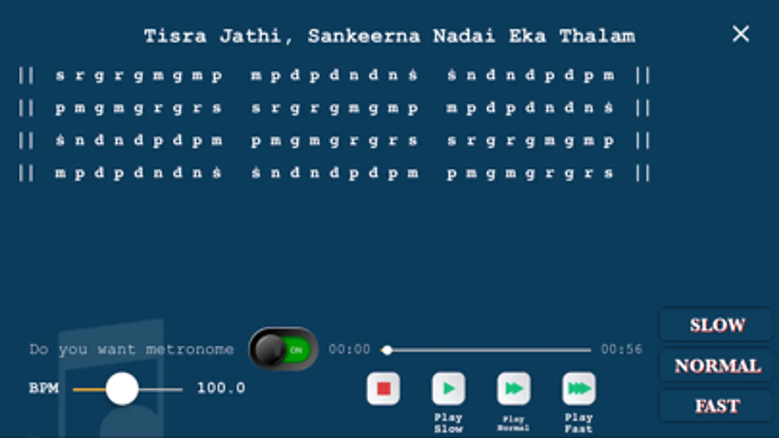 This app allows the user to select a base thalam, a jathi, and a nadai, then displays the corresponding alankaram given the inputs.