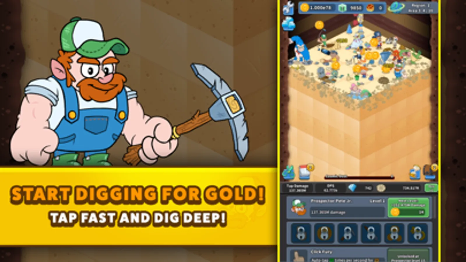Tap Tap Dig 2: Idle Mine Sim is an idle game that lets you take control of Prospector Pete Jr. and mine the core of several planets. Collect money, diamonds, warp cubes, and craft items! Spend money to upgrade Pete Jr. and mine the planet cores.