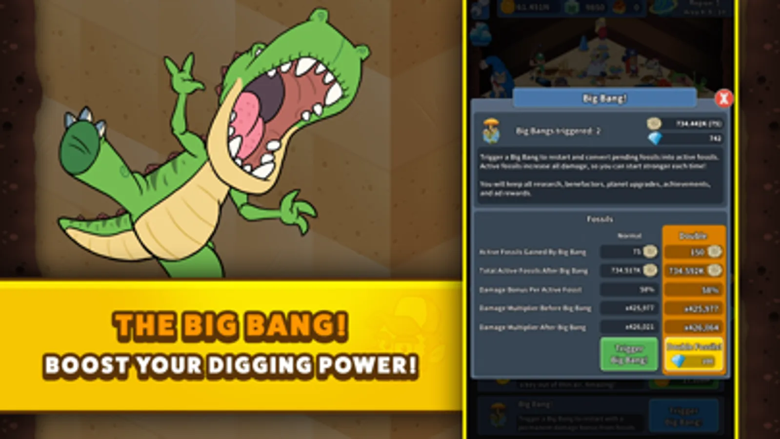Collect fossils and trigger a Big Bang to super-charge your dig! Spend fossils to hire idle benefactors for big money. Craft items to give yourself a real edge.