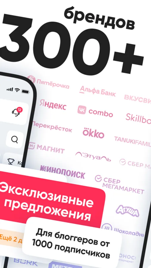 Магнит, Л'этуаль, Окко, Яндекс, Mail.ru, VK, Перекрёсток, СберМаркет, Тануки, Papa Johns, Aliexpress, Чистая линия, Агуша, BORK, МТС, Metro Cash&Carry, МЕДСИ, Утконос, Таксовичкоф, Шоколадница, Додо Пицца, Манго Страхование, TOPGUN, Спортмастер, Skillbox, Grow Food, Литрес и многие другие доверяют нам и размещают свои эксклюзивные предложения.