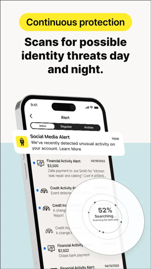 Receive customized alerts for bank account activity, credit card opens, new account applications, and more. Help protect against identity theft and take action to protect your info right from the palm of your hand. Millions of customers trust us to help protect their identities. Here's what features you’ll find on iOS: