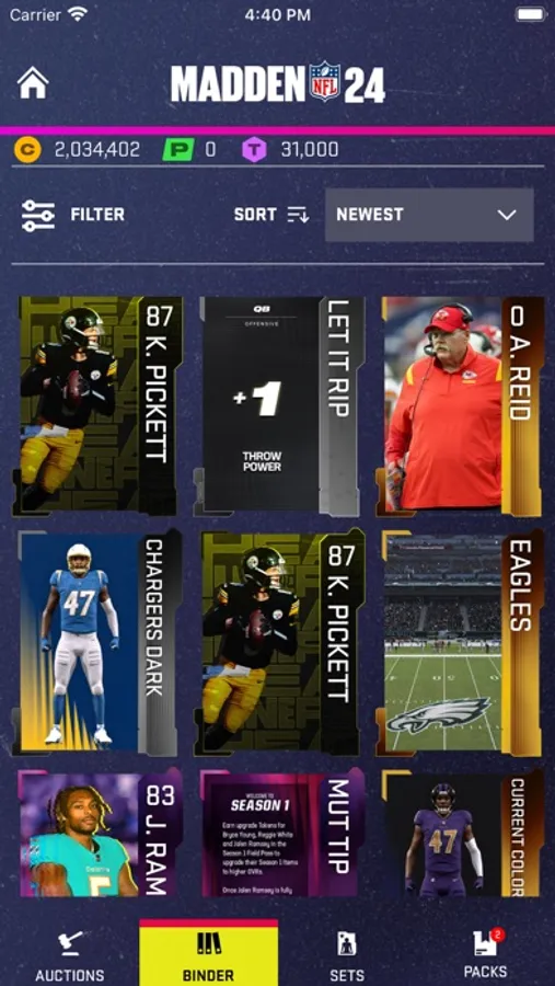Connect to the Auction House anytime, anywhere. Bid on items, access your Binder, and post items for auction at the optimal price, utilizing recent sales data from across the Ultimate Team community. It's even easier to manage your Ultimate Team on the go with all-new functionality to complete sets and open packs!