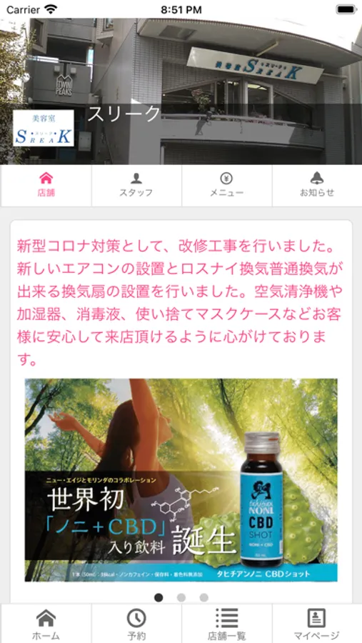 マイページでは、来店履歴や予約内容、Push通知の確認も行なえます。