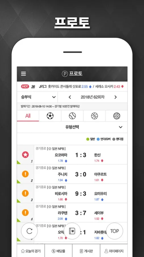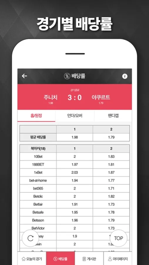 국내외 배당률을 클릭 한 번으로 확인할 수 있습니다. 내가 관심 있는 경기를 국내와 해외 배당률을 빠르게 확인할 수 있습니다.