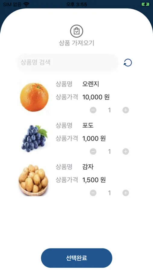 - 상품 조회 : 웹 관리자사이트에서 등록한 상품 목록 조회 가능