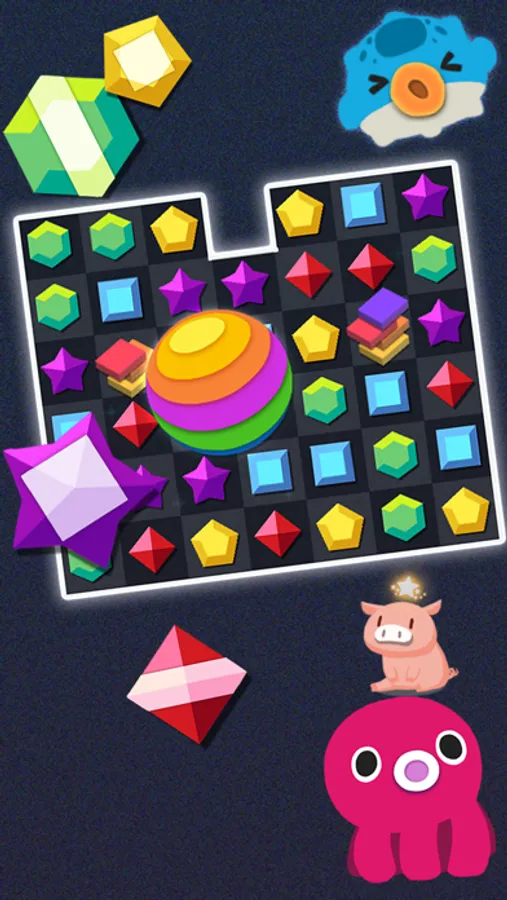 Gems, Space Blowfishes, Space Grass, Cube Prison and stacked Block Tower..... There are so many gates you can break through with joy!