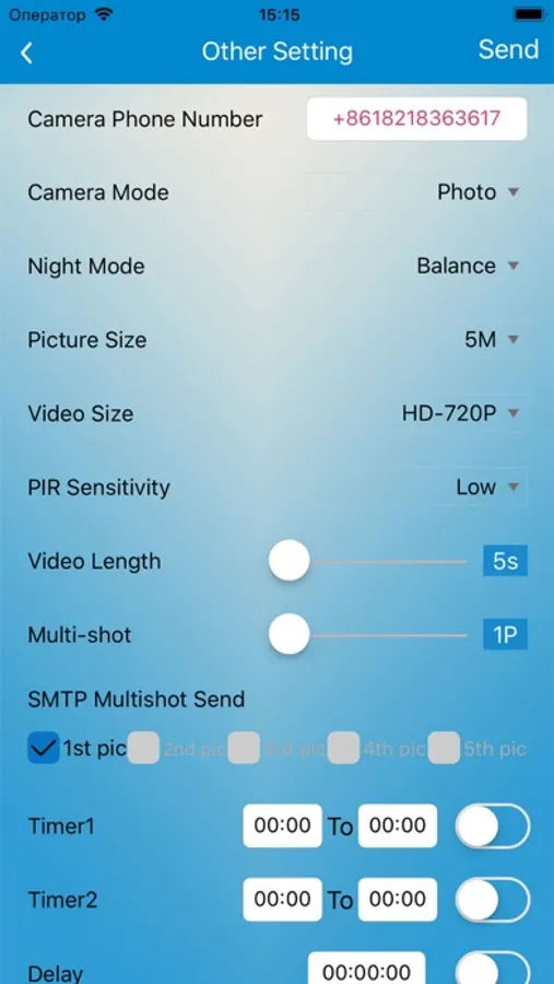 The camera after receiving these SMS commands from the app is reconfigured remotely without the camera owner having to have the camera in their hands. This saves valuable time and money by not having to travel to where the camera is in operation to change the settings.