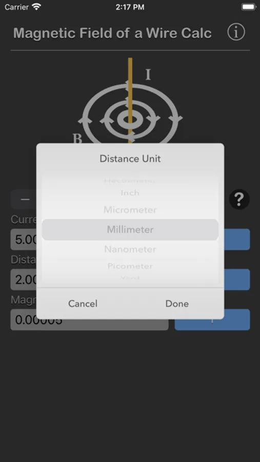 Magnetic Field of a Wire Calculator are physic/math calculator to find Wire Magnetic Field, Current flow in Wire with Distance fast and easy.