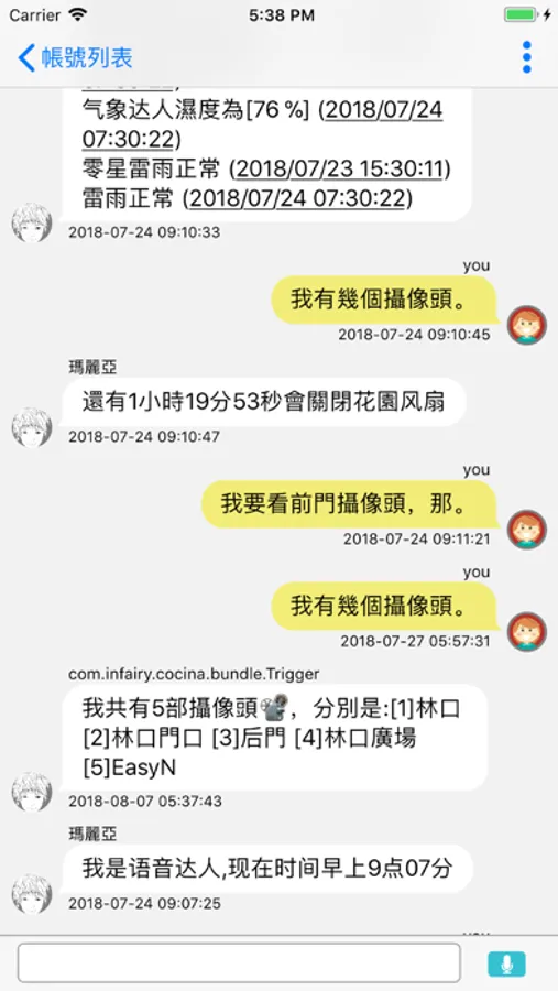或是詢問「我有多少設備?」,「我有幾台攝像頭?」,「我要看門口攝像頭」,「現在的設備狀態」等等