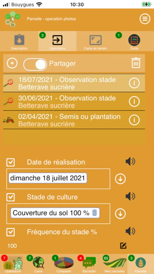 an App that share agricultural field operations between farmers,