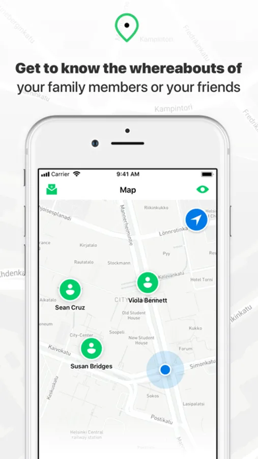 The "Friends Finder, track location" app uses extremely accurate geolocation services! Install the app on your smartphone, add your family - that's all! *