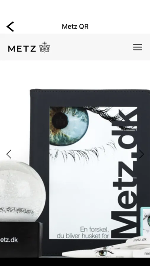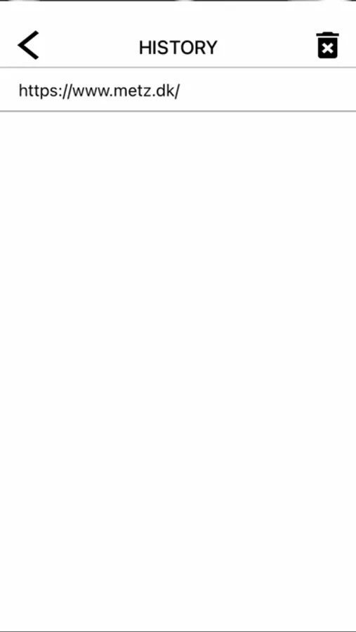 Metz is an app used for scanning all QR codes containing URLs. When you have scanned a QR code, the app will show the webpage inside the app. The last 10 QR code scans will be saved as history in the app, where it will be possible to open them again without the QR code. It is also possible to find informations about Metz in the app.