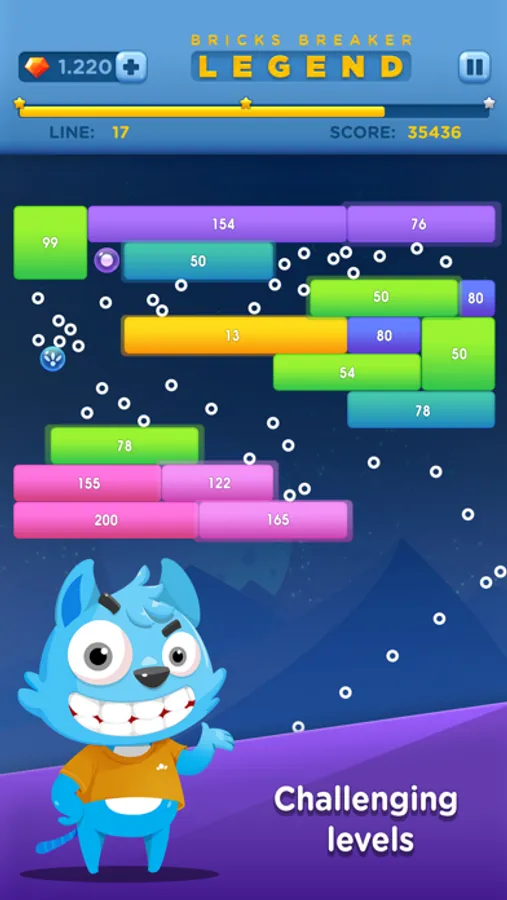 Play Bricks Breaker Legend now and enjoy the satisfying feeling of aiming the ball, choosing the best angle, shooting and breaking as many bricks as possible.
