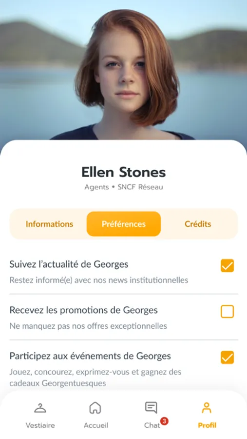 Retrouvez sur votre compte personnalisé toutes les informations de votre profil : votre matricule, vos coordonnées, votre point de livraison et vos préférences d’utilisation de l’application.