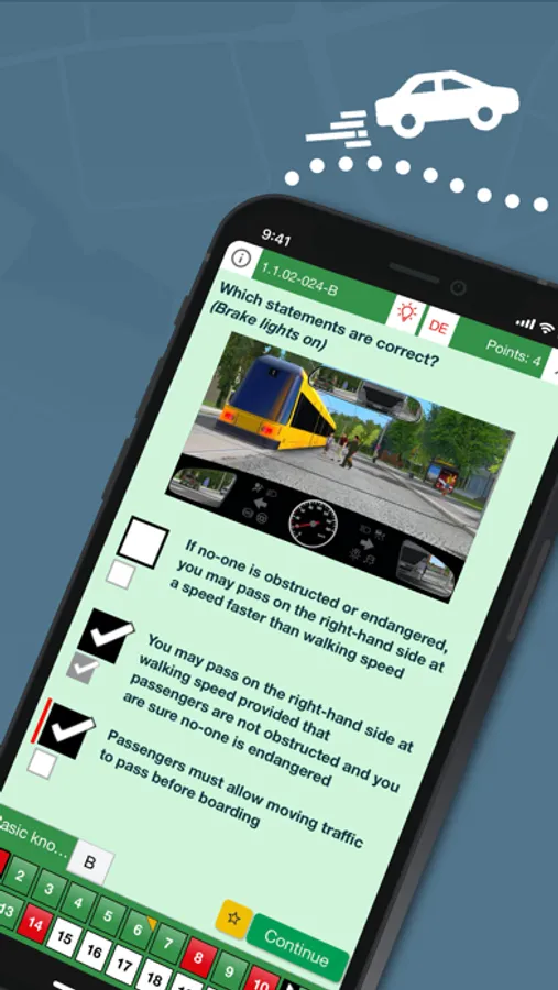 Our driving license app is the perfect preparation for your theoretical driving test. The app contains all official questions of the currently valid question catalog of TÜV | DEKRA.