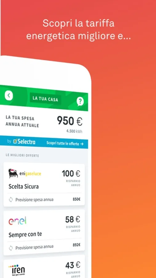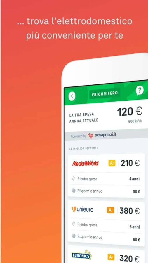 Nella pagina Risparmio della sezione Consumi potrai vedere le migliori offerte di risparmio sulle tariffe energetiche più convenienti disponibili sul mercato, selezionate in base al tuo profilo di consumo, e i modelli di elettrodomestici più efficienti e convenienti sul mercato.