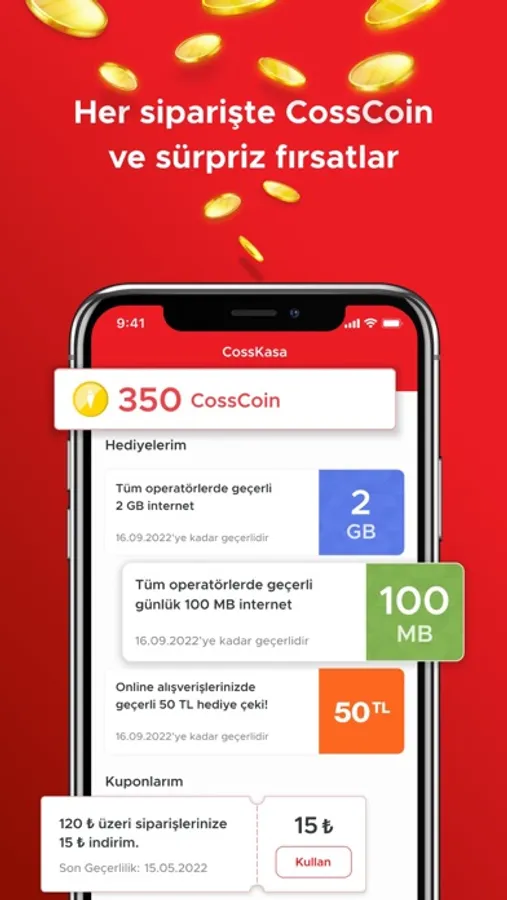 • Yediğiniz her Baydöner lezzeti, bu uygulamada CossCoinlere dönüşür. Uygulama üzerinden verdiğiniz tüm siparişlere ek olarak, restorandan sipariş verip fişinizi okutarak da CossCoin kazanabilirsiniz. CossCoin sipariş üzerinden kazanılan bir puan türüdür.