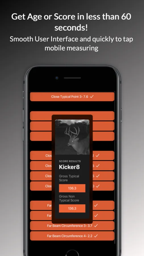Ever wondered how to score deer? Curious what the easiest way to score a deer is? BuckScore® is your answer! Holding two U.S. issued patents, BuckScore® is the only science-proven program that allows you to score pictures of bucks in minutes. The app accurately estimates antler size including spread, beam length, tine length, and circumference all to calculate a Net and Gross score within 3% of the actual score. With BuckScore®, you have one app that organizes, documents, and scores all of your big bucks. Take a trail cam photo and get new insights with the ability to estimate the score of a buck on the hoof. Calculate size on harvest photos from years past. BuckScore® is easier and saves you time over the normal tape and note pad mess. Join BuckScore® Today!
