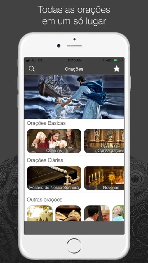• Orações diárias, Orações ocasionais, Litanias, Novenas, Orações Marianas, Oração a Jesus, Orações aos Santos e muito mais.