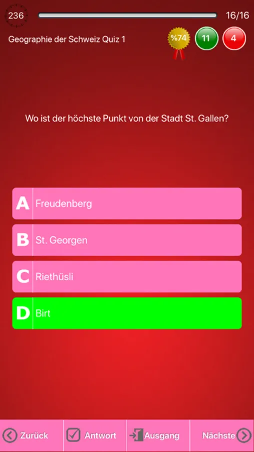 - Sie können das Quiz mit der Schaltfläche "Beenden" verlassen. Wenn Sie das Quiz beenden, können Sie die Ergebnisse überprüfen.