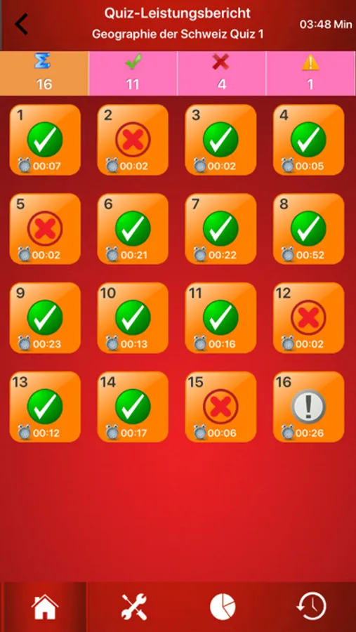- Wenn Sie mehr als eine quiz-Kategorie gespielt haben, können Sie alle quiz-Sitzungen für die ausgewählte quiz-Kategorie anzeigen.