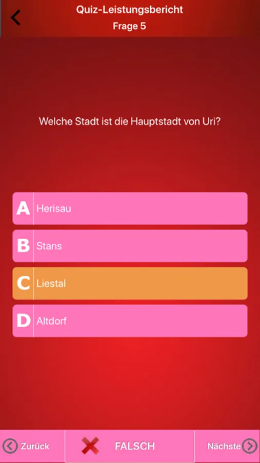 - Quiz results screen shows the sum of correct, incorrect and skipped questions, and their response time. Quiz Ergebnis kann einen Katalog oder eine Liste anzeigen.