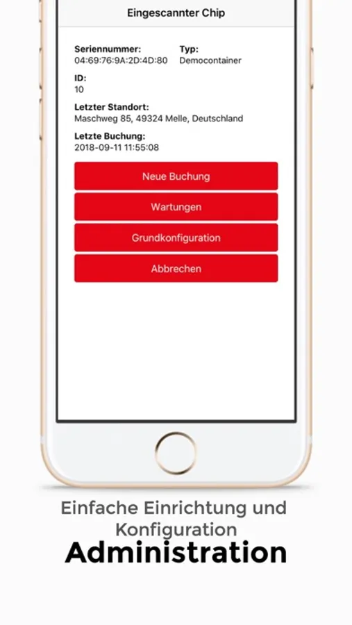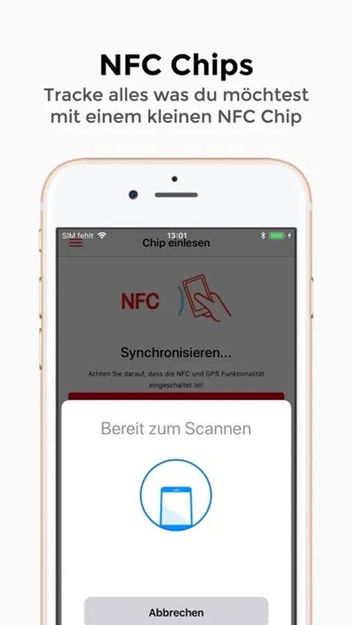 Scannen Sie NFC Chips an Ihren Containern, Fahrzeugen oder anderen Gegenständen um die Position in trackme zu erfassen.