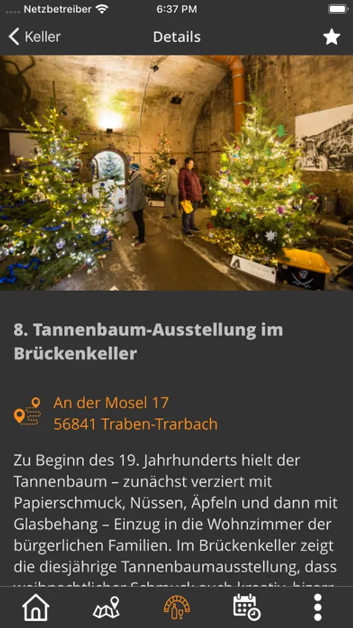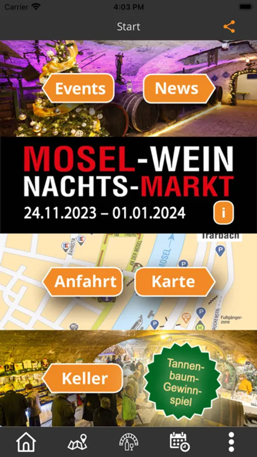 With the Moselle Wine Night Market app, you will receive the latest news from the Christmas market in the wine cellar underworld of Traben-Trarbach. It provides an overview of the opening hours, events, parking facilities, bus timetables and much more.