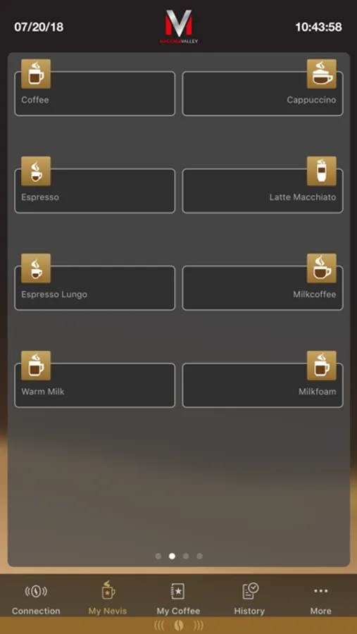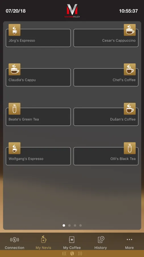You can find the most recently purchased drinks in the course on your NEVIS Barista App, you can enjoy them again immediately. You always have an overview of your specialty coffee specialties.