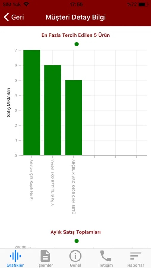 Cari ve stok ekranlarında grafik rapor desteği mevcuttur.Grafiksel olarak stok ve cari kart bilgileri görülebilir.