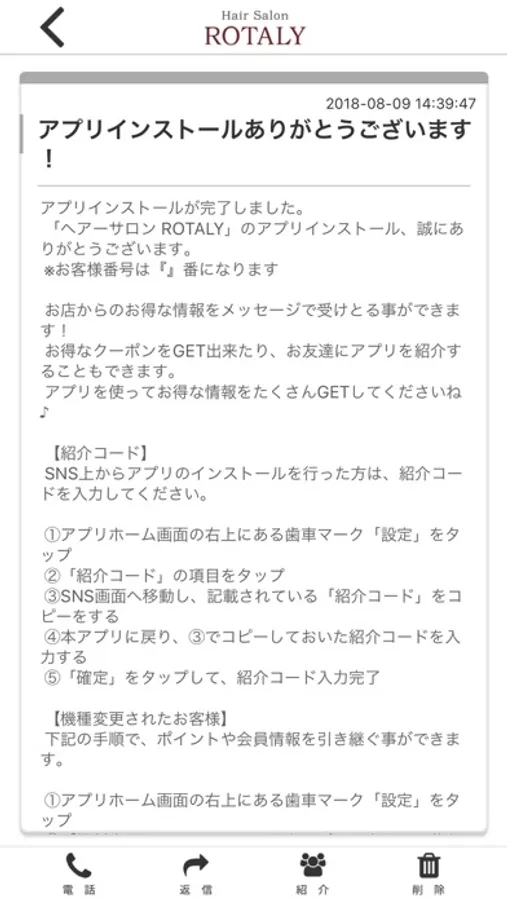ROTALYのアプリをSNSを通じてお友達に紹介する事ができます。