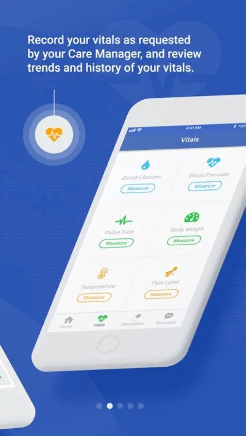 In PatientTouch app, patients can record their vitals such as heartbeat, blood pressure and temperature etc. and also view the complete history. Patients can maintain and view their full profile and updated contacts numbers of personal contacts and emergency contacts.