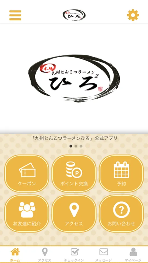 このアプリでは、ラーメンひろの最新情報の受け取りや便利な機能を使う事ができます。