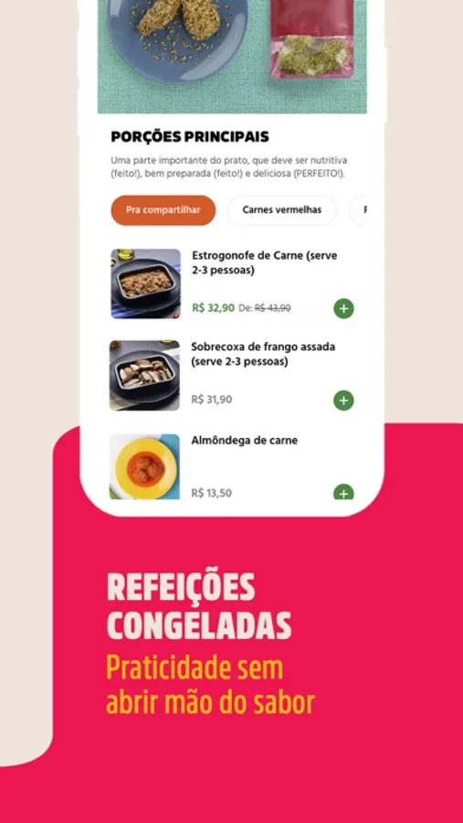 Centenas de receitas prontas e congeladas, feitas por Chefs e Nutris, montadas e individuais para você combinar como quiser
