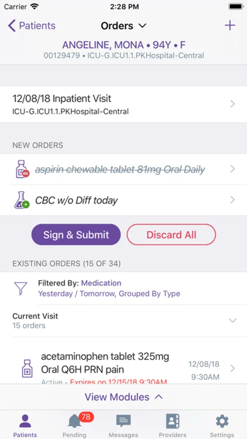 PatientKeeper’s mobile app supports physicians’ clinical workflow and provides anytime, anywhere access to aggregated clinical data from disparate backend systems. The PatientKeeper Mobile Platform overlays your existing hospital systems so physicians can easily access clinical results, view enterprise PACS images, enter orders, enter charges and perform other clinical workflows -- all from within a single app on their iPad® or iPhone®. To access data, your organization needs to be a licensed PatientKeeper customer.