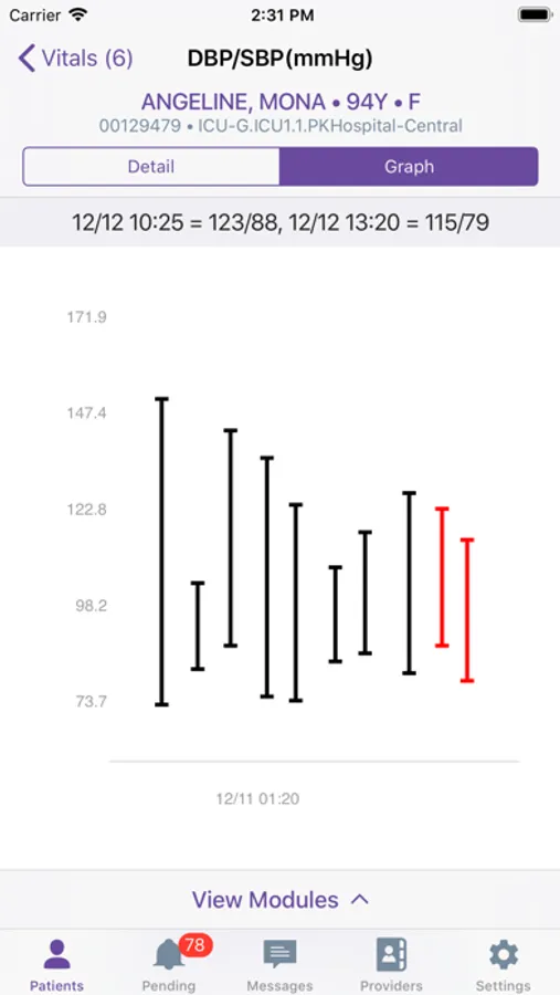 • Review an at-a-glance presentation of temperature, blood pressure, heart rate, and other vital signs as well as input/output measurements.