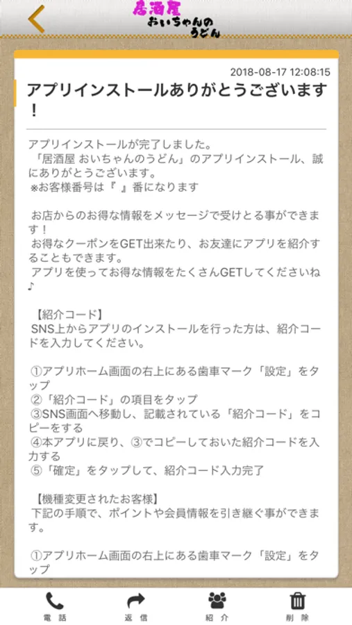 おいちゃんのアプリをSNSを通じてお友達に紹介する事ができます。