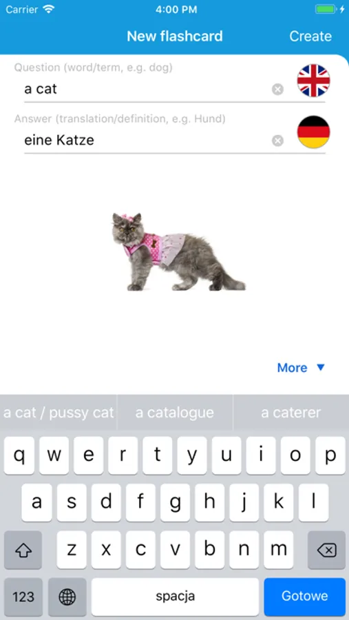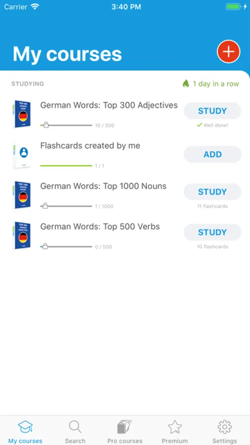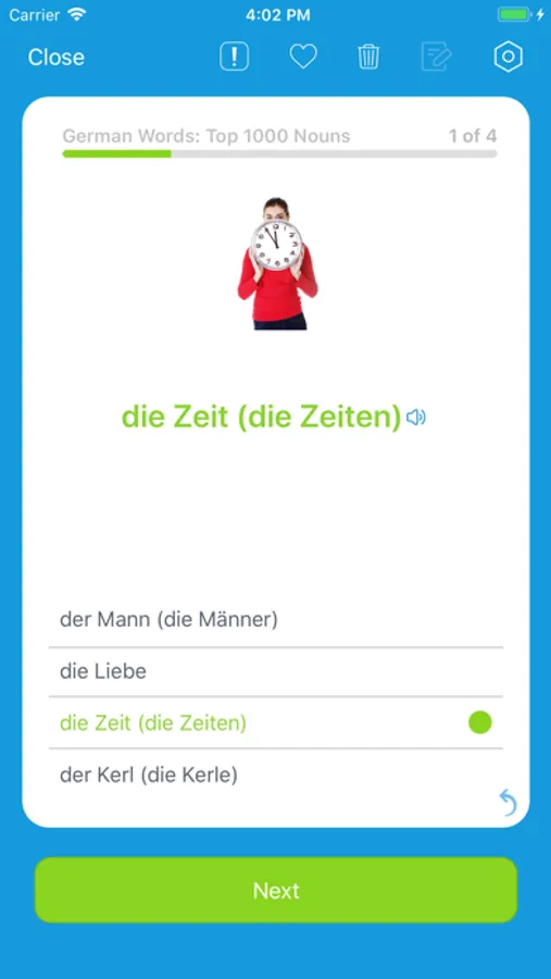 Flashcards are constantly rising in popularity, due to the fact that they combine entertainment with learning. If you aim to know and speak German fluently, for studies, work or in order to impress native speakers with your knowledge during the next trip to Germany - this app is perfect for you!