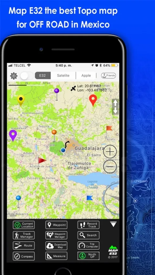MAP E32 is a specialized GPS app with a topo map of Mexico