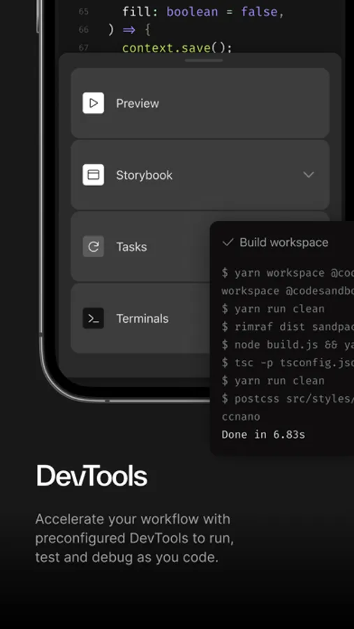 Powered by the cloud, CodeSandbox for iOS is your development hub for iOS and the perfect companion for CodeSandbox on the desktop.