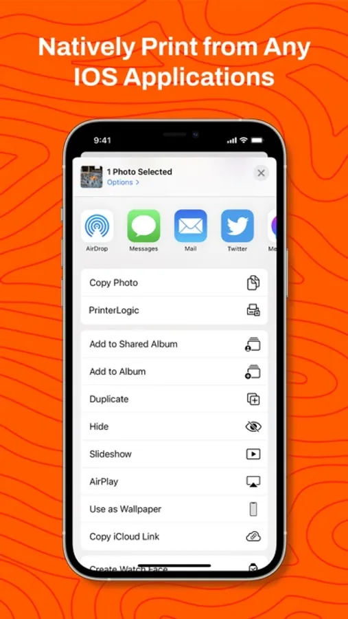 How it works: From within any app, launch a print job using the Share function and then select PrinterLogic. Choose an available printer and select Print. The print job is processed on your mobile device and sent directly to the printer.