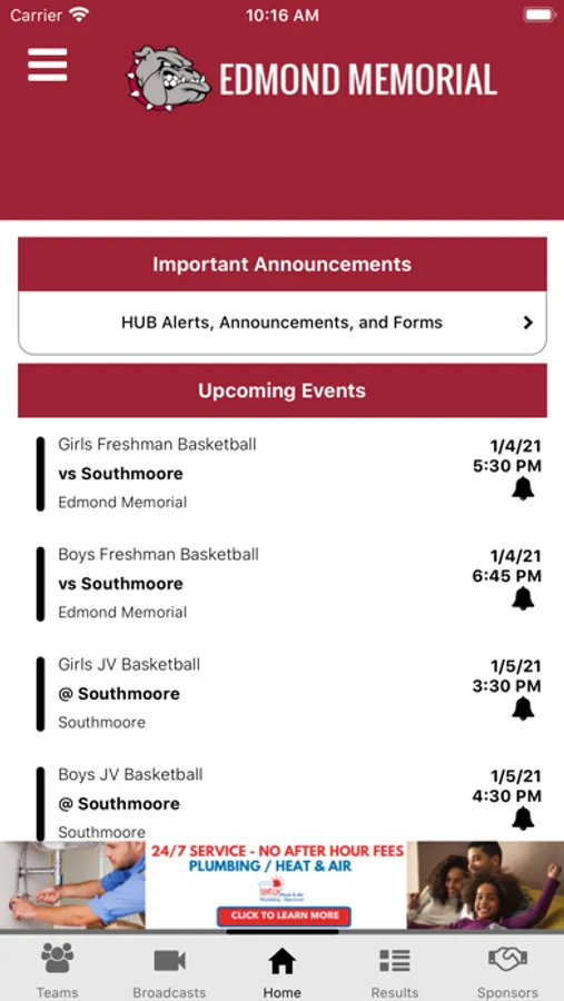 The features built into the app are similar to what is commonly seen in collegiate and professional sports apps, but until now have never been available to the high school level on a national level due to the cost of development and maintenance. We have removed those barriers with the introduction of this app.