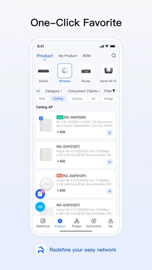 Product: It displays all major products of Ruijie, including AP, switch and gateway. You can quickly select needed models based on the key feature of products.