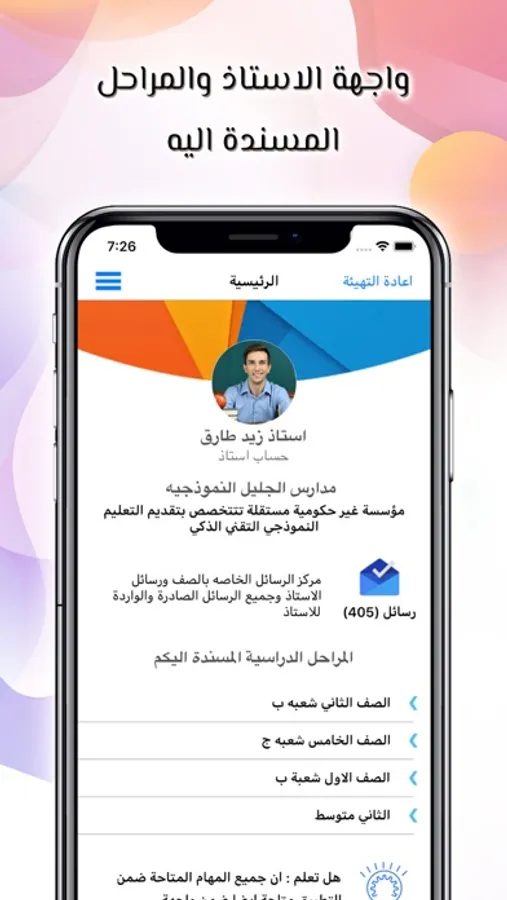 حزمة تطبيقات الهاتف الذكي للكادر التدريسي تمكن كل محاضر ضمن مؤسستك التعليمية من الوصول الى حسابات الطلبه والصفوف المسندة اليه وسرعة ارسال الاشعارت ورسائل البريد الالكتروني المباشرة عبر اجهزة الهاتف المحمول الى كل من اولياء الامور والطلبه ايضا على حد سواء.