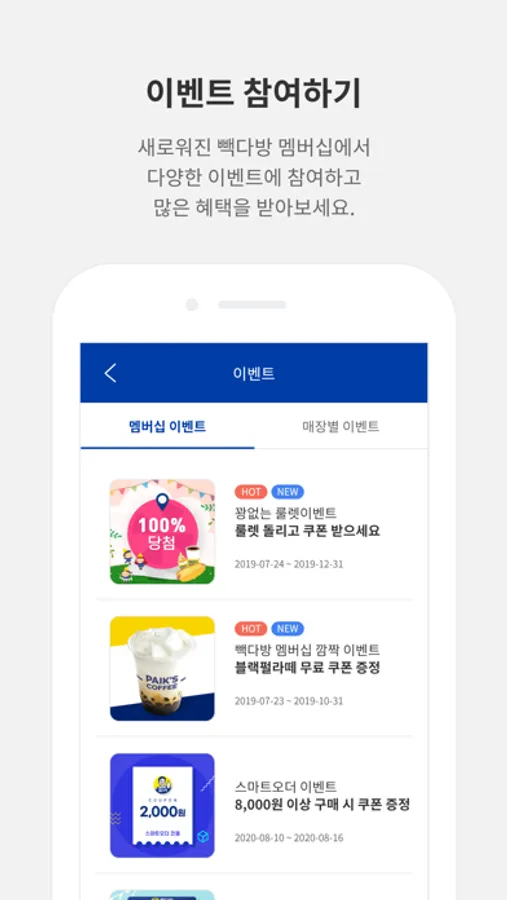 보다 편리하고 특별한 멤버십 서비스로 스마트하게 빽다방을 즐기세요.