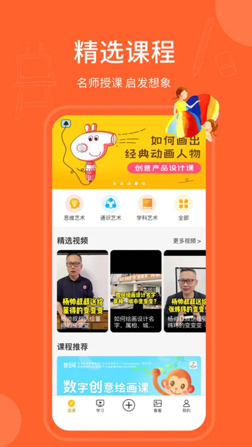 【精品课程】 名师团队精心打造的系列课程,满足青少年不同层次的需求。内容包括变变变思维美术、绘本原创美术、创意手工、百科通识、艺术启蒙、中外美育,国画书法,油画创作等,内容形式丰富,可自由订阅。