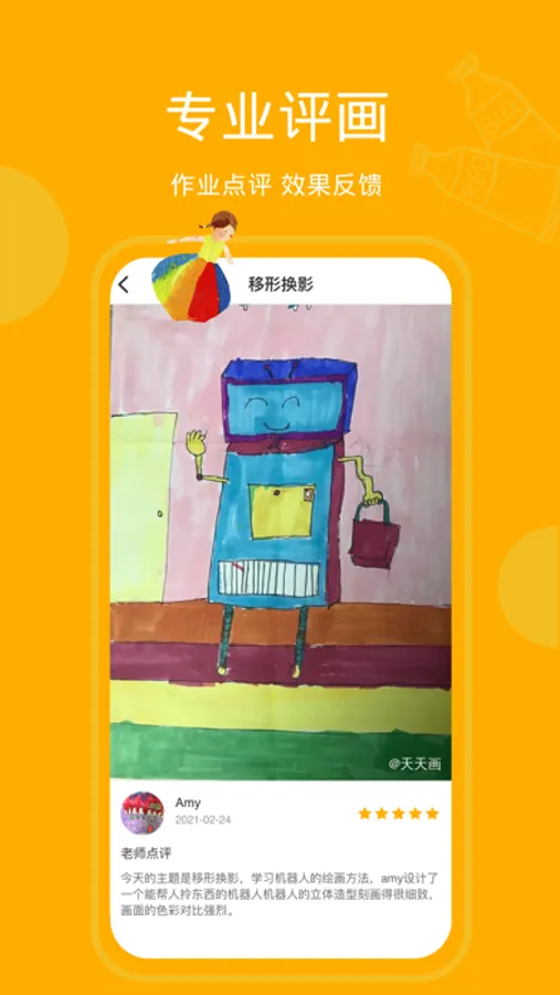 天天画是一款线上美术教学应用,定位青少年群体。通过订阅美院名师视频课程,让孩子享受专业的绘画知识。“点亮想象、培养审美、树立自信”是我们的教学理念;