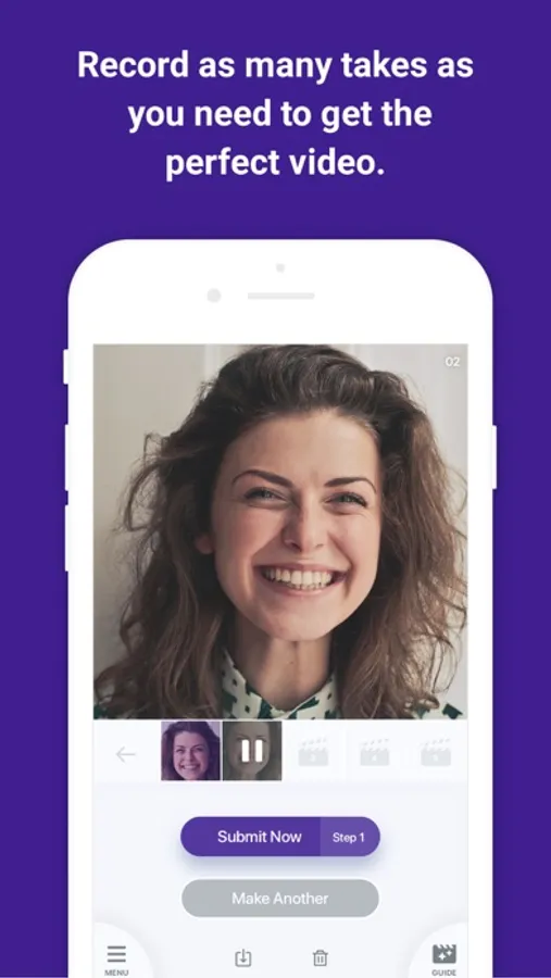 Videos are no more than 15 seconds long and you can record as many takes as you need. Submit your finished video from the app directly to your consultant.