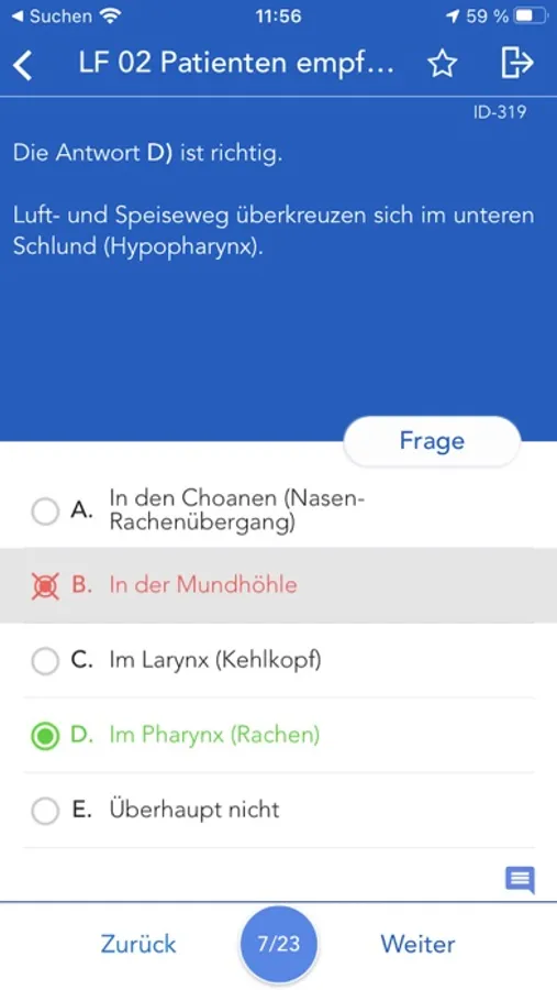 Die App verfügt über Einfachauswahl, aber natürlich auch Mehrfachauswahl, um Ihr Wissen auf den Prüfstand zu stellen. Nach jeder Frage gibt es eine ausführliche Erläuterung, die hilft, die eigenen Fehler nachvollziehen zu können und sich so stetig weiter zu verbessern.